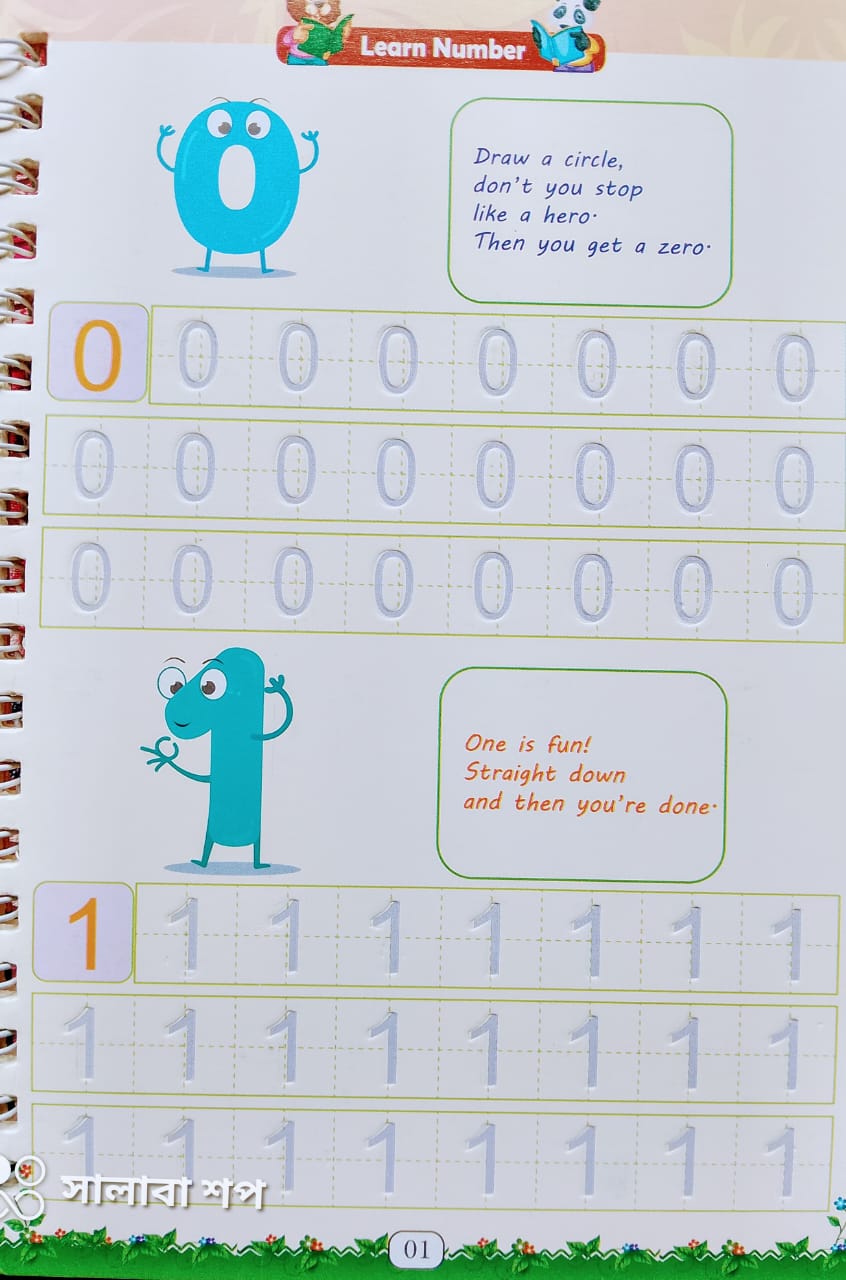 ✔️ প্রতিটি বইয়ে বর্ণমালা ও সংখ্যা খাঁজ কাটা রয়েছে, যাতে বাচ্চারা সহজে লিখতে পারে।